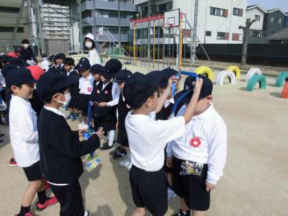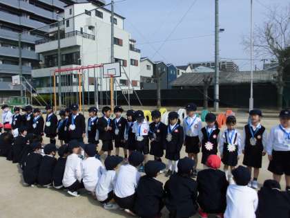 全校の子どもたちで1年生を迎える会をしました。今日から児童朝会デビューです。かわいい1年生の入場に拍手で歓迎しました。2年生は手作りのメダルをプレゼントしました。児童会のみんなが学校に関係のあるクイズを出してみんなで楽しみました。