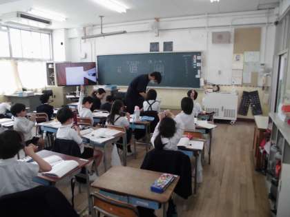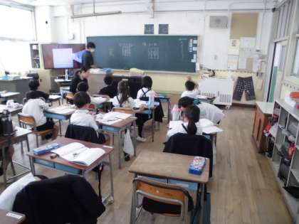 2年生は算数で、繰り下がりのない2けた+1けたのひっ算の学習をしています。1けたの数をどの位置に書くかなどが難しいようですが、悩みながらも一生懸命考えてひっ算を書き表していました。