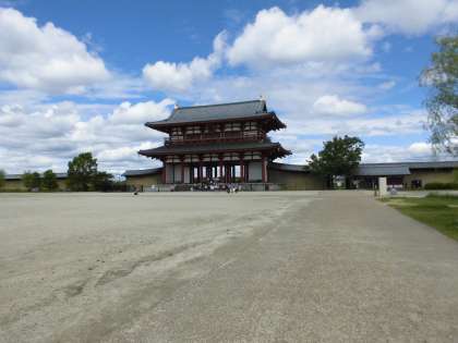 平城京跡に到着するとまずは朱雀門まで歩きました。気候は、暑すぎず寒すぎずちょうどよく、広い公園の中を歩きました。ほかの学校には合わず、貸し切り状態でした。