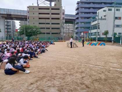 不審者対応における避難訓練を行いました。校内に不審者が入ってきたという想定で、各教室で子どもたちを守り、安全が確認された後、運動場へ避難させました。子どもたちは先生の話をよく聞き、素早く行動することができました。保護者の皆様もスムーズに引き渡しにご協力いただきありがとうございました。