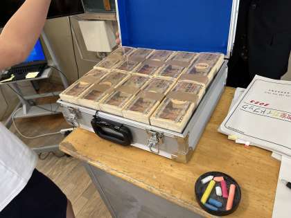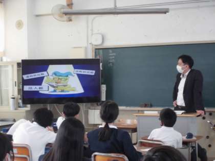 6年生は租税教室の出張授業を受けました。世界の税金にはいろいろなものがあり、犬税や馬税などがあると聞き驚きました。アニメで、もし税金がなくなったらという学習もしました。税金はみんなが幸せな暮らしをするために大切なものということがわかりました。最後に、一億円(偽札)と一千万円の束を見せてもらいました。