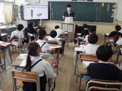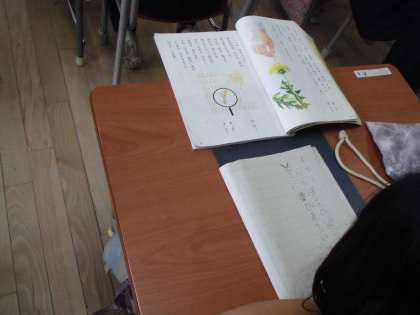 2年生は国語で「たんぽぽのひみつを見つけよう」という学習しています。この文章の中でどこにどんなことが書かれているかを考えています。子どもたちは、たんぽぽの根が長いことや私たちがいつも目にしている花は、じつは小さな花の集まりだということなど、文章をしっかり読んで知ります。