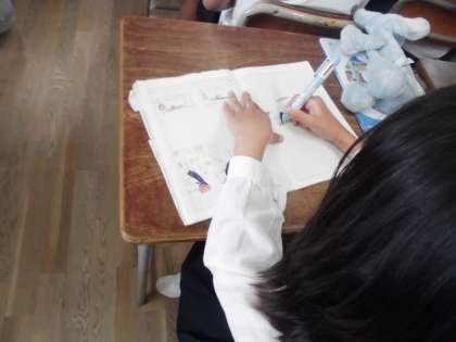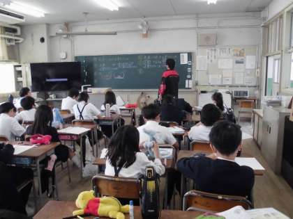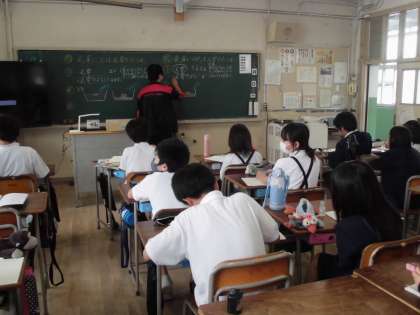 5年生は理科で「植物の発芽と成長」の学習をしています。種子が発芽するには何が必要か考えていました。「土は必要だ」「日航は必要だ」など、思い思いの予想をし、では、どうして必要なのかについても考えて発表していました。