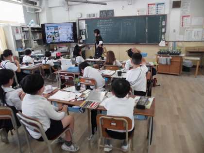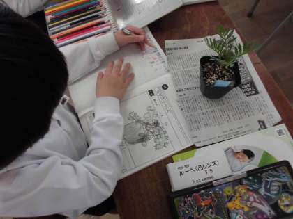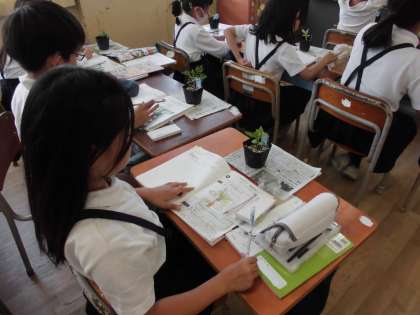 3年生は理科で「植物の育ちとつくり」について学習しています。ホウセンカやマリーゴールドなど、春に植えた植物が少しずつ成長してきた様子を観察しています。植物がどのように育っているのだろうか観察カードに書いていきます。みんなで丁寧に観察しています。