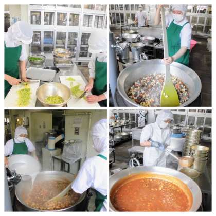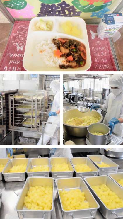献立は、ハヤシライス・キャベツのゆずドレッシング・りんごカット缶・ごはん・牛乳でした。