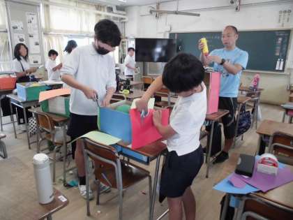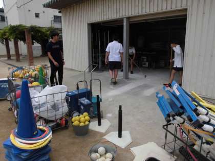 運動委員会は体育倉庫の片付けと学級に配るボールの箱づくりを頑張りました。栽培委員会は栽培している畑の草抜きを一生懸命頑張っていました。