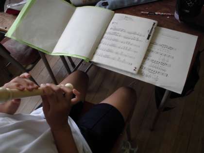 4年生は音楽でリコーダーを使って曲をたくさん練習しています。4年生がリコーダーの学習を始めると、とても素敵な音色が校内から聞こえてきます。「勇気りんりん」や「にじ」などたくさんの曲を演奏することができます。