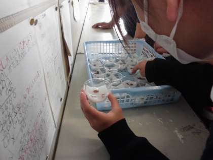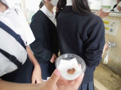 5年生は、理科で発芽の実験を続けています。いんげん豆の発芽で、水だけで発芽するか、脱脂綿のうえに種子をのせて水を適量、慎重に図って入れて実験していました。