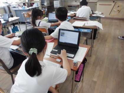 4年生は国語で「引用のルール」について学習しています。学習者用端末を使って様々なところから引用することが多くなった現代、きちんとどこから引用してきたかを明確にすることや、ルールを守って引用することを学習することはとても大切なことです。