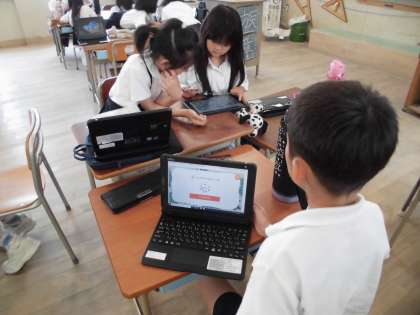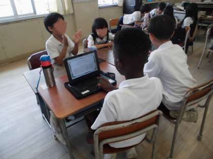 3年生は道徳で「おしゃべりすごろく」を学習しました。すごろくで止まったコマに書かれたお題「大きくなったら何になりたいですか」などについて答えていました。学習者用端末から出て来るお題に、友達と一緒に楽しく答えていました。