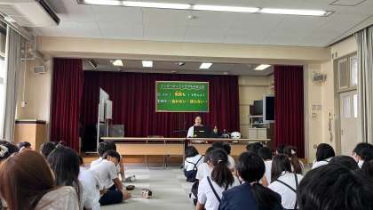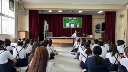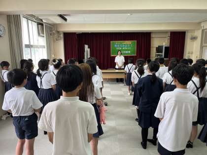 6年生は平野警察の方に講師に来ていただき非行防止教室を行いました。最近、ネットやSNSのトラブルが小学生にも多くなってきています。そこで、ネットやSNSの使い方について考え、「個人情報を教えない」「人の気持ちを考えよう」など、しっかり学ぶことができました。
