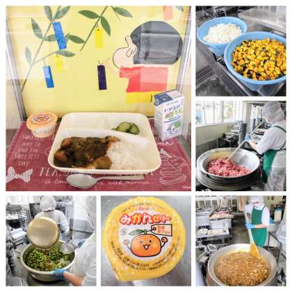 献立は、夏野菜のカレーライス・きゅうりのサラダ・みかんゼリー・牛乳でした。