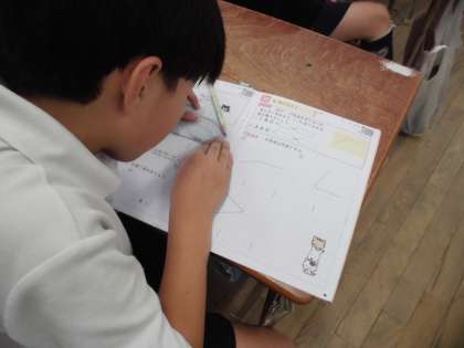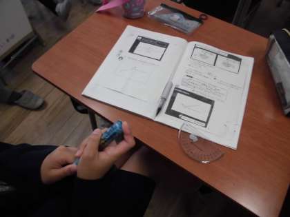 4年生は算数で分度器を使って角度を測りとる学習をしています。はじめての分度器の学習は扱い方がむずかしくうまくいきません。四苦八苦しながらも、一生懸命に学習していました。