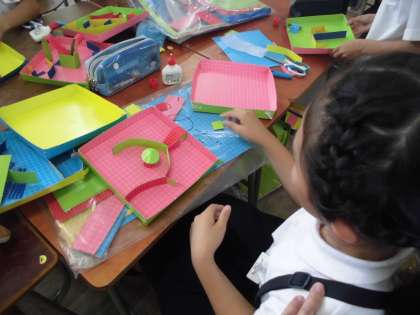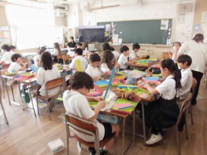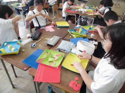 4年生は図工で「コロコロガーレ」を作っています。工夫してずいぶん出来上がってきました。