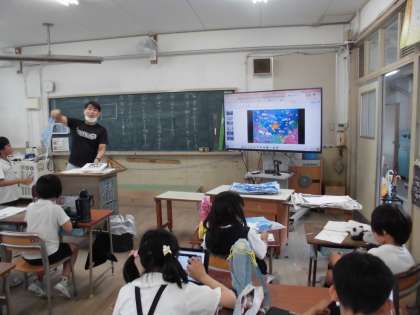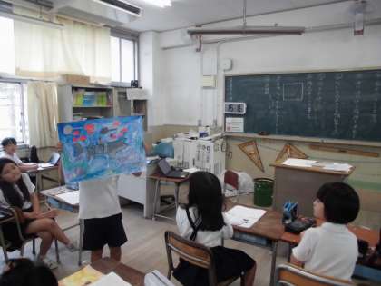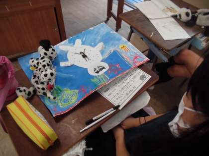 3年生は図工で海の生き物を描いています。絵の中に小さな自分の写真を貼っています。見つけるのが楽しいです。