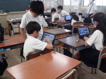 5年生は国語で「地域の魅力を伝えよう」の学習を続けていました。長居公園、駒川中野商店街などを調べ、スカイメニューを使って作っています。ずいぶん進んできています。タウン誌を作って夏休みに仕上げるようです。出来上がりが楽しみです。