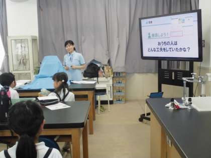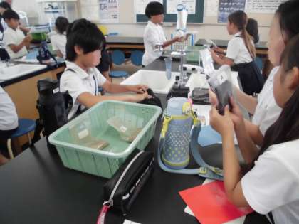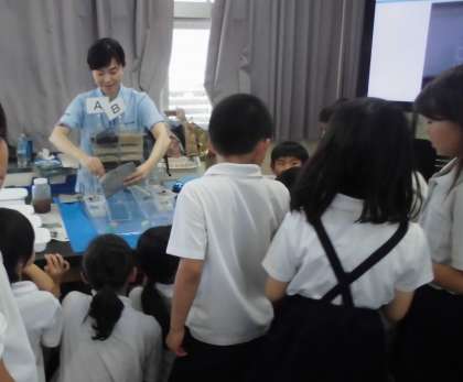 4年生は理科でサントリーから水の出前授業を受けました。きれいな水を作る実験を見ました。話を一生懸命聞いて、興味をもって見ていました。