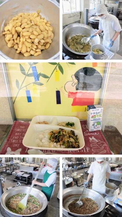 献立は、牛丼・もやしとピーマンのごまいため・大福豆の煮もの・ごはん・牛乳でした。