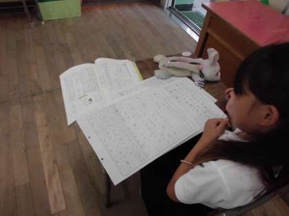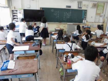 2年生は国語科で作文の学習をしています。文の組み立てを考えて丁寧に書いていました。お手伝いのこと題材にしていて、みんな家でいろいろなお手伝いをして頑張っていることがわかりました。