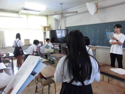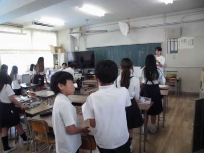 5年生は自然体験学習で行うレクリエーションについて、キャンプファイヤーで歌う歌など、係の人たちが練習をしていました。