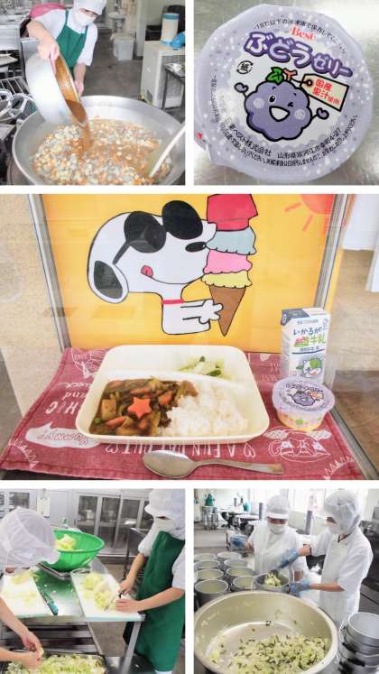 献立は、ビーフカレーライス・野菜のピクルス・ぶどうゼリー・牛乳でした。