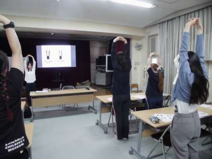 心と体をリフレッシュする研修会を行いました。手軽にできるストレッチなどを学びました。