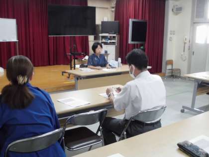 スクールカウンセラーの先生に講師をつとめていただき、「自殺予防研修会」を行いました。夏休み明け、全国的に低年齢層の自殺が増えると言われています。子どもたちが夏休み明け、元気に登校し、学校生活にスムーズがスタートできるように、どのようなケアが必要なのかを研修しました。