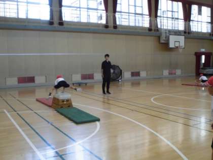 2年生は体育で跳び箱の学習をしました。順番に並んで姿勢よくとんでいました。
