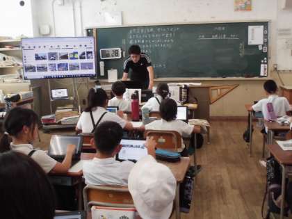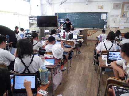 4年生は、社会科で自然災害について学習していました。タブレットを使って、情報を調べました。