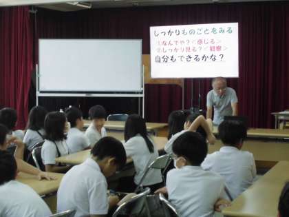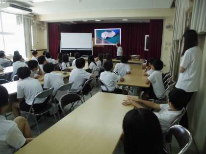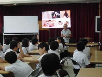 5年生は、伝統工芸である「お香づくり」の体験活動をしました。まず、1時間目に物の値段と価値について学習しました。子どもたちは、手間暇が物の価値に値するということを知りました。そして、映像で堺のお香づくりについて視聴しました。