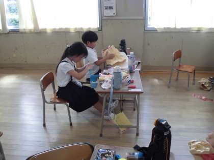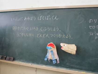 1年生は図画工作で「ぱくぱっくん」を作っています。紙封筒を使ったオリジナルのパペット人形です。「ねえ、みてみて。」教室に行くと、子どもたちが自分の作った素敵な人形を自慢げに、見せてくれました。みんな、素敵な人形ができていました。
