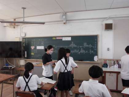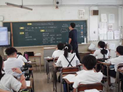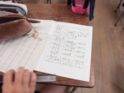 6年生は算数で「データの特徴を調べてみよう」の学習をしています。回数分析やドットプロットでデータをわかりやすく理解し、整理して考えていました。