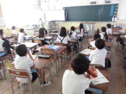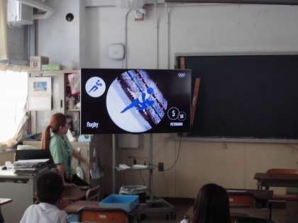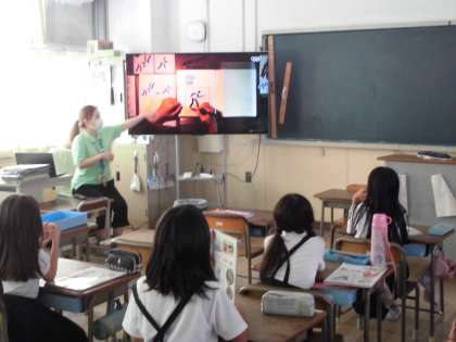 2年生は国語で「動物園の看板とガイドブック」の学習をしていました。その発展学習として、ピクトグラムについて知識を広めています。「ピクトグラム」は、世界中のどの人が見ても一目でわかりやすい「絵文字」や「絵単語」の案内記号です。前回のオリンピックのピクトグラムの動画を使って、どんなスポーツを表しているのか考えてみました。子どもたちから、正解がたくさん出てきて、とても興味をもって学習していました。