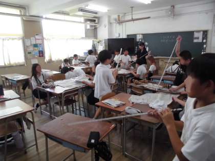 4年生は図画工作で「つなぐんぐん」の学習に使う新聞棒を作っていました。「細くしやなあかんねん」と、新聞を丸める作業を熱心に行っていました。みんなでつくるとどんどん新聞棒ができていきました。これからどうなるのか、楽しみです。