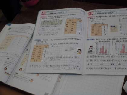 6年生は算数でデータをもとに調べる活動を続けています。グラフや表から問題に答える学習をくり返し行っています。