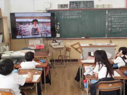 3年生は社会科で「スーパーマーケットの様子」について学習しています。動画で詳しく学習しています。