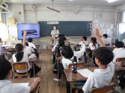 5年生は、瓜破小学校より栄養職員の先生をお招きして、栄養指導を受けました。野菜について学習しました。始めは、給食に出て来るたくさんの野菜の名前を考えました。野菜シルエットクイズにも挑戦しました。