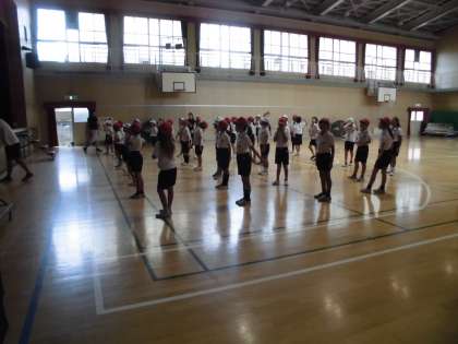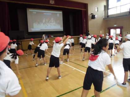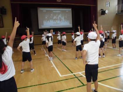 3年生は運動会の団体演技でAdoさんの「唱」を踊ります。モニターを見て一生懸命練習していました。結構テンポの速い、激しい踊りに苦戦しながら、がんばって練習しています。