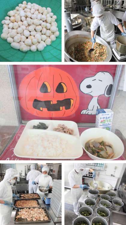 献立は、豚肉のねぎじょうゆ焼き・ふきよせ煮・きゅうりの赤じそあえ・ごはん・牛乳でした。