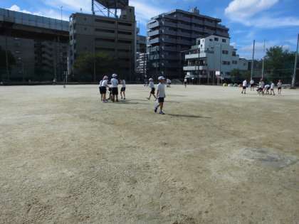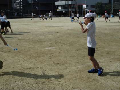 4年生は理科で空気と水の性質の学習を進めています。運動場で水の実験をしました。遠くにとばすために水をたくさん入れて、力強く押しました。