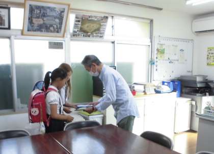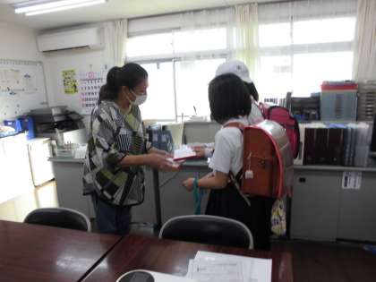 全員の児童が、いつも見守ってくださっている地域の方々に書いたお礼のメッセージカードを、児童会の代表の子どもたちが集会所までお届けに行きました。「ありがとう。10月7日の敬老会のときに、皆さんにお渡ししますね。」と、とても喜んで受け取ってくださいました。子どもたちの感謝の気持ちが伝わりました。