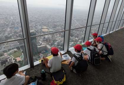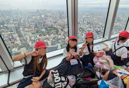 3年生は遠足でハルカスに行きました。展望台からの眺めはとても良かったです。学習もしっかりして、お弁当も展望台から地上を眺めながら食べました。