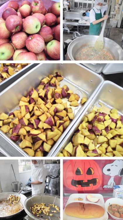 献立は、中華煮・大学いも・りんご・パンプキンパン・牛乳でした。