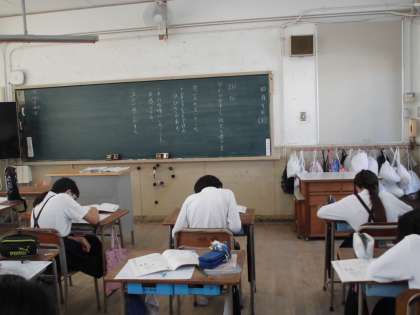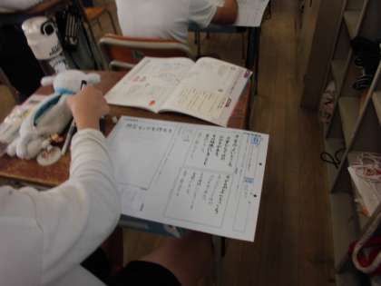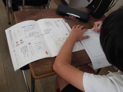 6年生は硬筆の書写の学習をしています。お手本をよく見てまっすぐ書くのは難しいですが、一生懸命書いています。