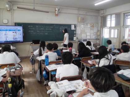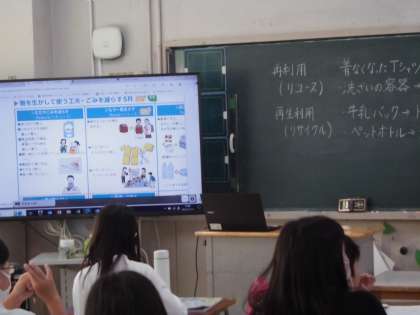 5年生は家庭科で「3つのR」の学習をしました。子どもたちはもう一度使うことに大変興味をもって、どんな使い方ができるかや、自分の生活の中でやっていることなどを積極的に発表していました。