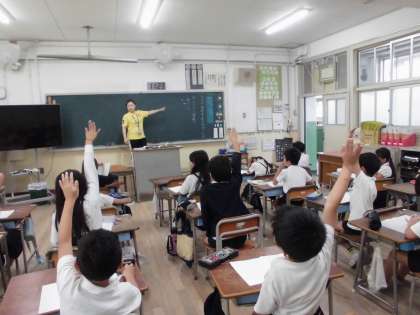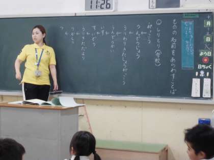 2年生は国語で「ものの名前しりとり」を学習しました。ものの名前といっても「学校」にあるものに限定すると結構難しいです。「がっこう」の「う」から始まると、「うんどうじょう」が出てきて、次の言葉に「うりわりきたしょうがっこう」と出て来ると、こどもたちは「また、うや」と声を上げていました。「う」で終わる言葉が多いことがわかり、とても楽しみました。