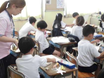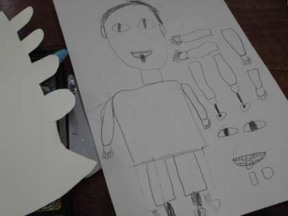 2年生は図工で紙版画を行っています。人の体のパーツに分けて切っていくのが難しいです。小さい部品は落とさないように気をつけて切り離していきます。