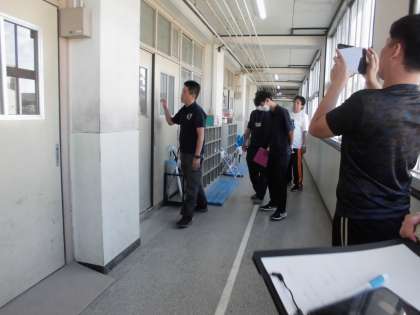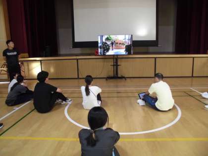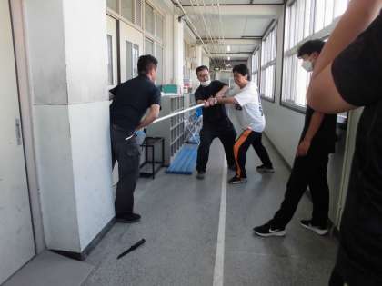 教職員の防犯訓練と研修会が行いました。はじめに、警察官が不審者役を行い、校内に侵入したと想定し、取り押さえる役、連絡役、児童役、看護役など。ロールプレイによる訓練をしました。その後、ロールプレイの時の動きの確認や課題分析などを行い、さすまたを使った研修をしました。