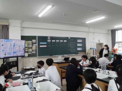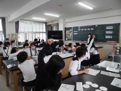 6年生は理科の実験でリトマス試験紙を使って、水溶液の性質を調べました。