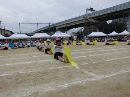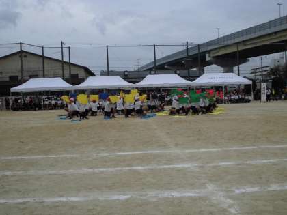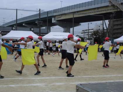 旗をもって進んだり、真ん中でオリンピックを表現したり、直線になって順に起き上がったり、様々な工夫がちりばめられています。